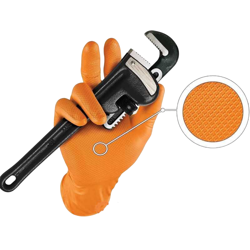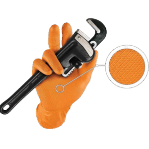 • Guanto monouso anallergico in nitrile sintetico, molto elastico e resistente, soprattutto alle sostanze chimiche aggressive a base d’olio, come solventi e lubrificanti.
