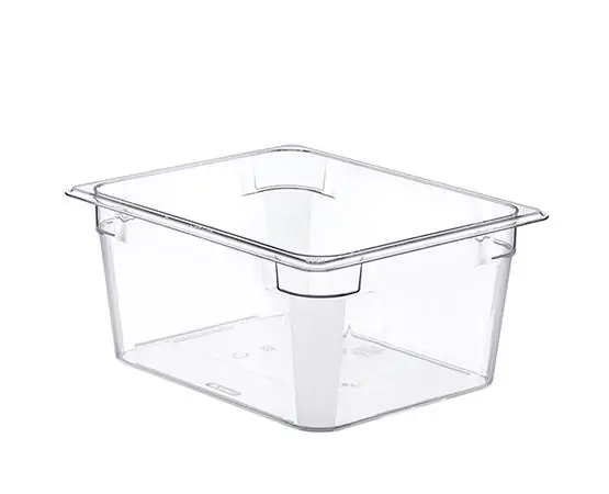 Vaschette GastroNorm 1/2: ideali per conservazione e servizio, con stampa per tracciabilitร , misurazione dei liquidi e angoli rinforzati.