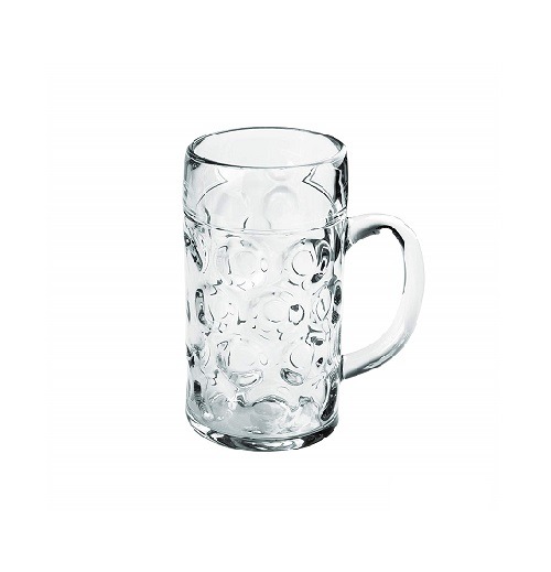 Brocca birra in vetro resistente con fondo rinforzato.