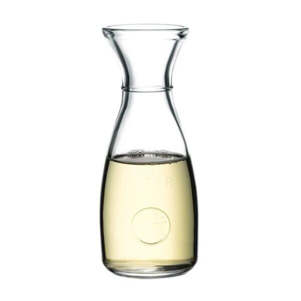 Caraffa in vetro da 1 litro dal design elegante, ideale per servire vini, con forma slanciata che favorisce l’aerazione e il versamento.