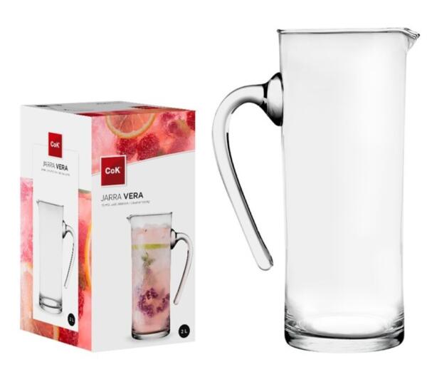 Brocca in vetro con manico da 2 litri, elegante e spaziosa, ideale per servire acqua, succhi o tè freddo, perfetta per eventi.