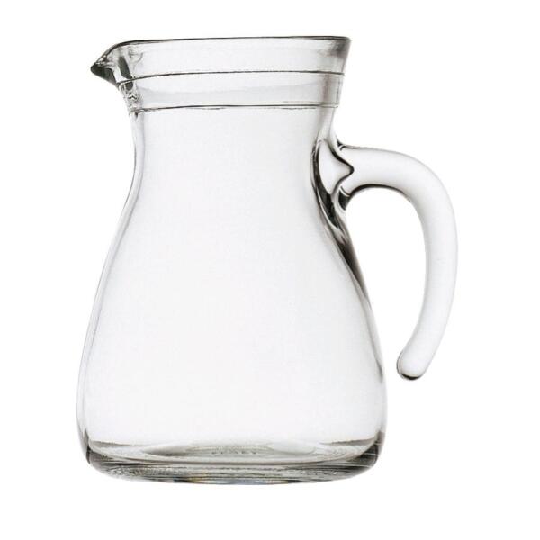 Caraffa in vetro da 500 ml con manico ergonomico, perfetta per servire bevande fredde con stile e praticità.