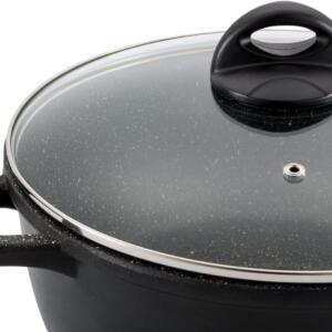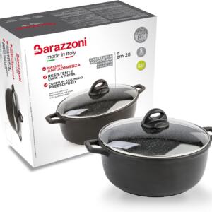 • Barazzoni Le Cotture Speciali Casseruola Due Manici con Coperchio, Alluminio Pressofuso, Nero, 28 cm