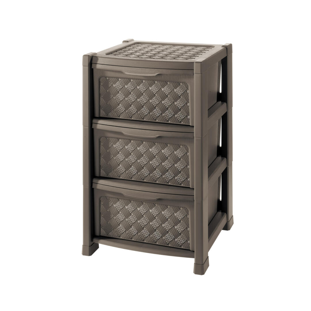 Questa cassettiera Arianna offre tre scomparti separati e si distingue per un aspetto ricercato e piacevolmente rétro garantito dalla lavorazione intrecciata effetto vimini. Grazie all’assenza di trasparenze questa soluzione può essere utilizzata anche per riporre effetti personali e oggetti sensibili o per fare ordine nelle zone di passaggio in modo sobrio ed elegante.