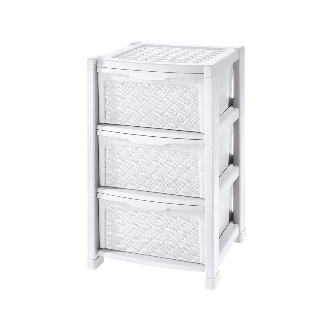 Questa cassettiera Arianna offre tre scomparti separati e si distingue per un aspetto ricercato e piacevolmente rétro garantito dalla lavorazione intrecciata effetto vimini. Grazie all’assenza di trasparenze questa soluzione può essere utilizzata anche per riporre effetti personali e oggetti sensibili o per fare ordine nelle zone di passaggio in modo sobrio ed elegante.