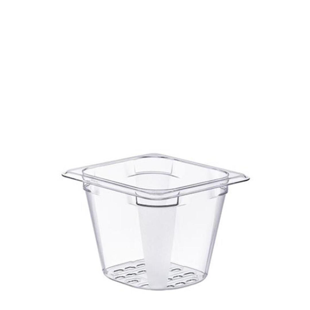 – Il design rigato consente ai liquidi di defluire molto più rapidamente nella vaschetta di base. Ciò significa anche tempi di scongelamento più rapidi. La vaschetta forata rimane separata dal bordo della vaschetta non forata durante l’impilamento. Questa posizione lo rende facile da sollevare e maneggiare.
