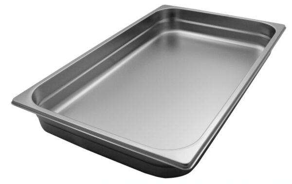 GASTRONORM 1/1 h65. Bacinella Gastronorm in acciaio inox AISI 304 GN 1/1. Dim. 530×325 altezza 65 mm. Capacità 8,5 litri.
