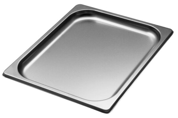 CIBO 1/2 h20. Vaschetta Gastronorm in acciaio inox AISI 304 NG 1/2. Dimensioni 325×265 mm, altezza 20. Capacità 1 litro.