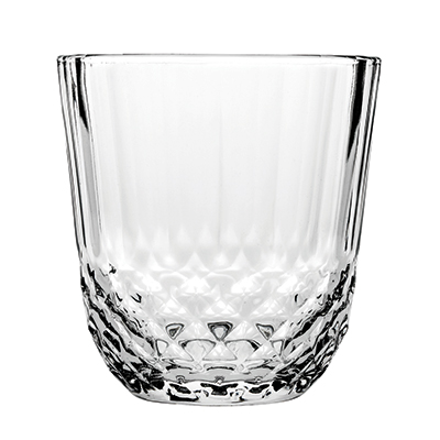 Bicchiere acqua trasparente in vetro, resistente, linea vintage.