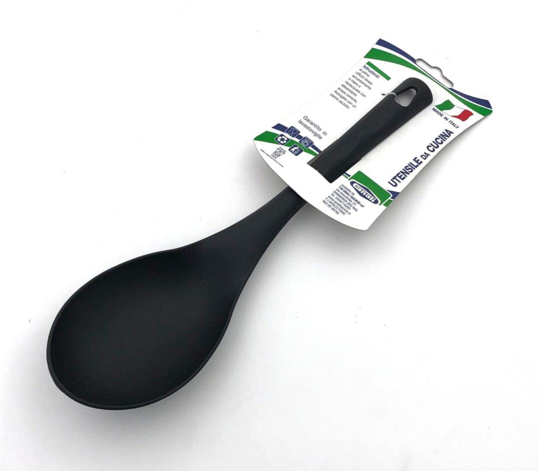 Cucchiaio serviriso in nylon, pratico e resistente, perfetto per porzionare riso e contorni senza graffiare le pentole.