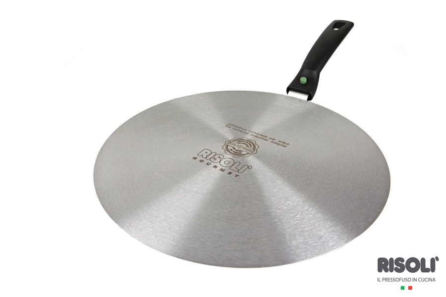 Disco adattatore universale in acciaio inox 18/10, ideale per rendere compatibili con l’induzione pentole e padelle fino a 28 cm, garantendo riscaldamento efficace e mantenimento del calore per oltre 10 minuti.