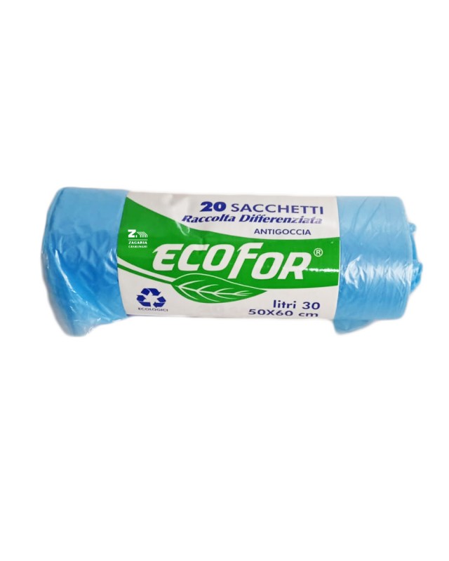 SET 20 PZ SACCHI RIFIUTI NETTEZZA CELESTE 50×60 cm 30LT ECOFOR ANTIGOCCIA