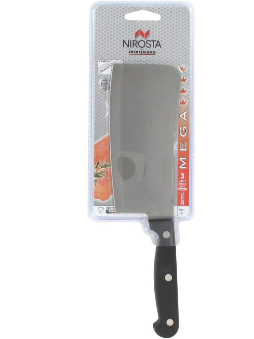 Nirosta Mannaia Monopezzo Forgiato in Acciaio Inossidabile con impugnatura ergonomica Dimensioni lama: 15×7,3 cm Dim 27×7,3×1,5 cm Linea Nirosta Mega
