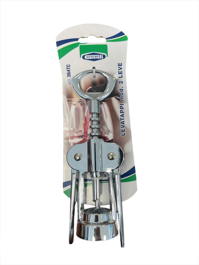 Levatappi a due leve in acciaio inox, progettato per aprire bottiglie con facilità e senza sforzo, garantendo una presa sicura e un’apertura rapida.