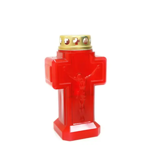 Devozione luminosa perenne: il lumino elettrico rosso a forma di croce, 19 cm di luce intermittente, un tributo duraturo per onorare i tuoi cari.