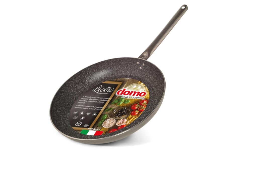 Caratteristica è l’impronta professionale grazie al manigliame in acciaio rivettato che assicura non solo un fissaggio stabile e sicuro ma anche la possibilità di utilizzare i pezzi in forno. L’interno è in antiaderente effetto pietra senza PFOA, metalli pesanti o nickel, che assicurano affidabilità e praticità d’uso. Idonea a tutte le fonti di calore (eccetto induzione).