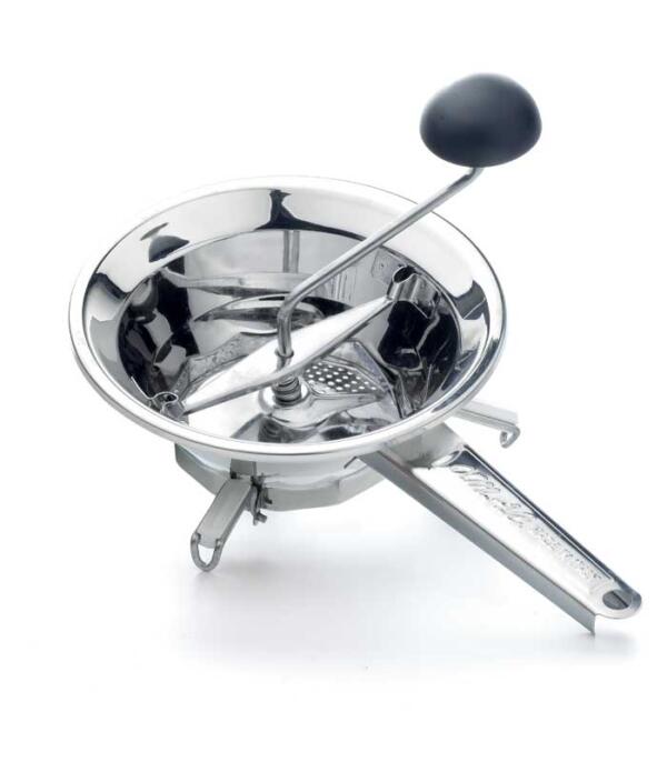 Passatutto in acciaio inox 18/10, con tre filtri intercambiabili, semplice da lavare, studiato per ottenere passati di ogni tipo.
