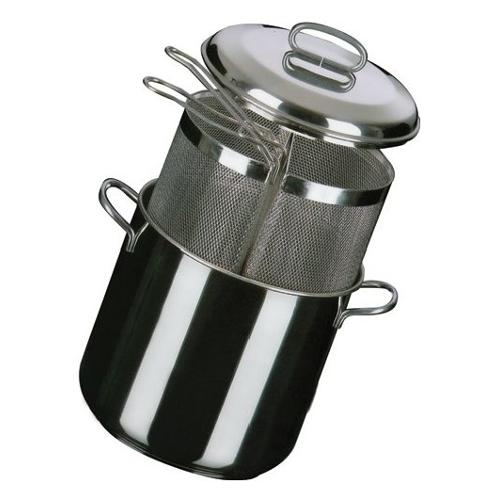 Pentola pasta con 2 cestelli cm 24 in acciaio inox 18/10. Cuoce 2 diversi tipi di pasta contemporaneamente. Dotata di 2 cestelli da 500 gr l’uno. CON FONDO DIFFERENZIATO CHE SCALDA PIUโ VELOCEMENTE ED E’ PERCIO’ INDICATO PER UNA COTTURA PIUโ VELOCE