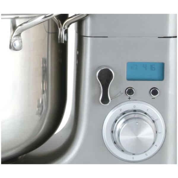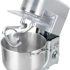 Impastatrice planetaria da 10 lt. con una robusta struttura in alluminio pressofuso con trattamento UV. Presenta un motore potente da 1500W e una ampia vasca in acciaio inox con impugnature ergonomiche e coperchio paraschizzi