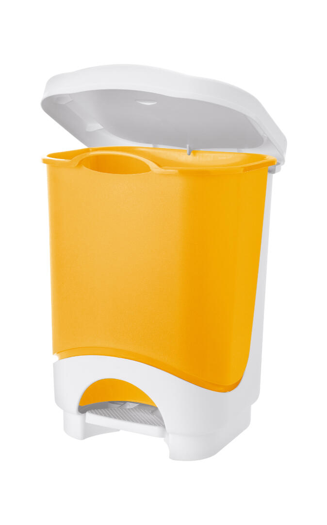 Una graziosa pattumiera a pedale dal design semplice e contemporaneo. Caratterizzata dal contrasto tra fondo colorato e dettagli neri, questa soluzione si adatta alle abitazioni e agli uffici con uno stile moderno e vivace.