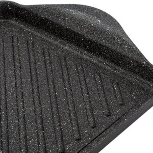 Il rivestimento antiaderente di alta qualitร assicura una cottura senza sforzo e una facile pulizia, mentre i bordi rialzati mantengono i succhi e i sapori dei cibi all’interno.