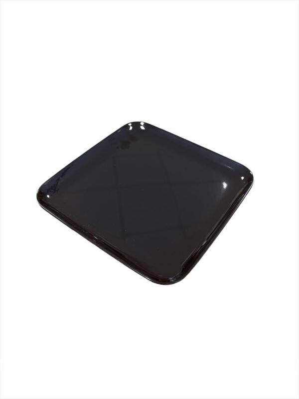 Vassoio quadrato in melamina nera, dall’estetica elegante e moderna, ideale per la presentazione di snack e finger food, con elevata resistenza e un design raffinato.