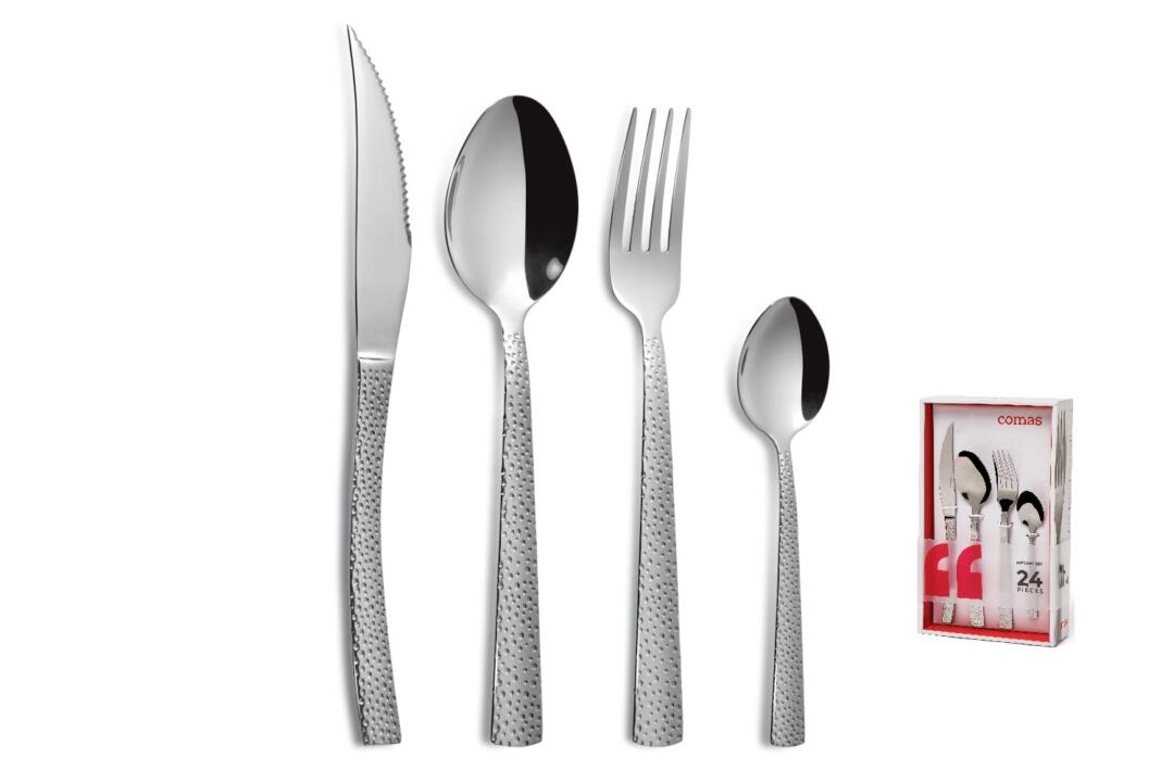 Set di posate in acciaio inox 430 nickel free, finitura a specchio. Lavabili in lavastoviglie e certificate per il contatto con alimenti.