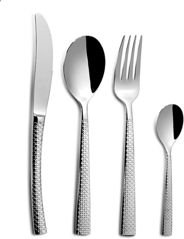 • Composto da: 6 coltello da tavola / 6 cucchiaino da tavola / 6 forchetta da tavolo/6 cucchiaino da caffè
