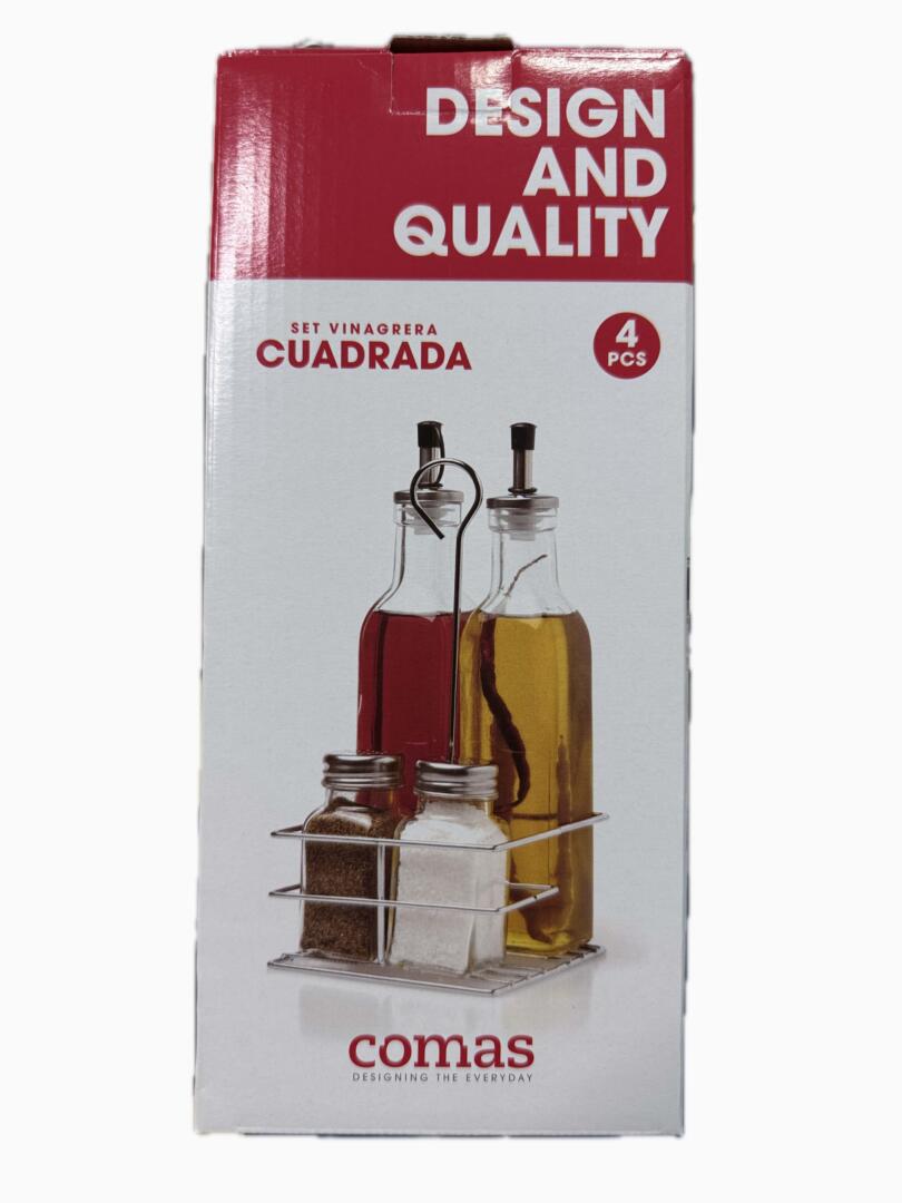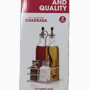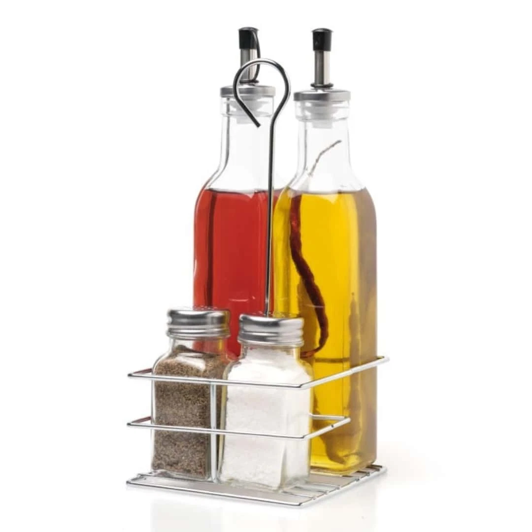 Set 4 Menage Olio Aceto Sale Pepe in Acciaio e Vetro