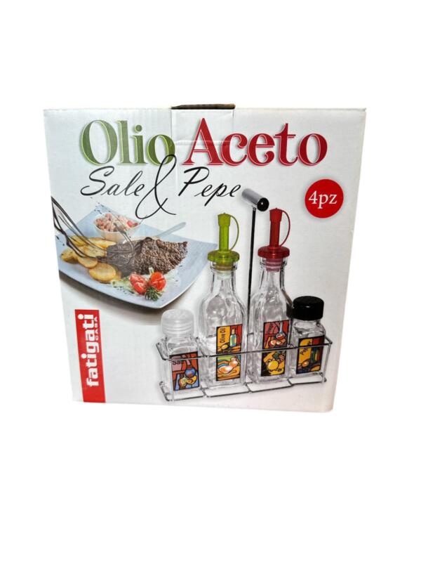 Set condimento olio –  aceto – sale – pepe con cestello in acciaio