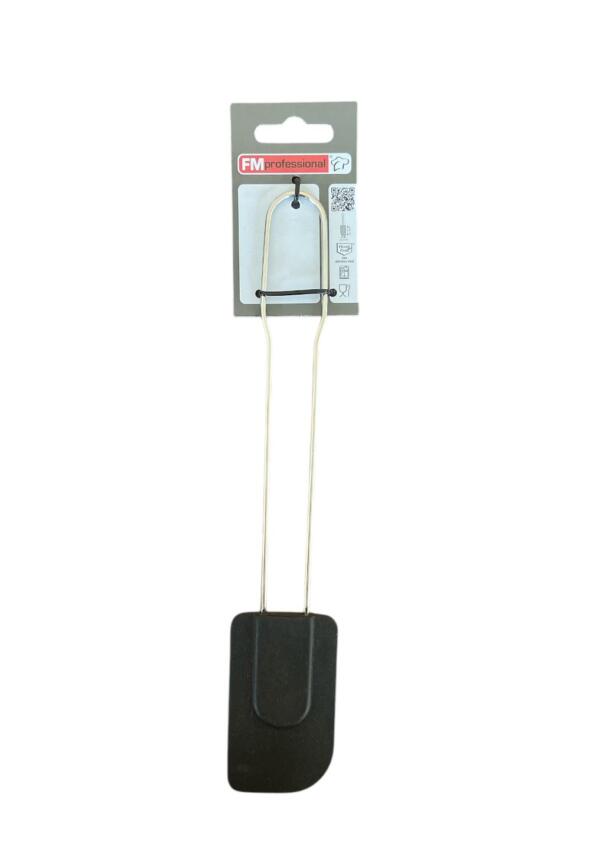 Spatola in silicone alimentare con manico in acciaio inox, resistente al calore, ideale per mescolare e distribuire uniformemente.