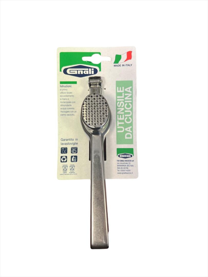 Spremiaglio professionale in acciaio inox, progettato per estrarre facilmente il succo e l’aroma degli spicchi d’aglio, rendendo la preparazione dei piatti semplice e veloce.