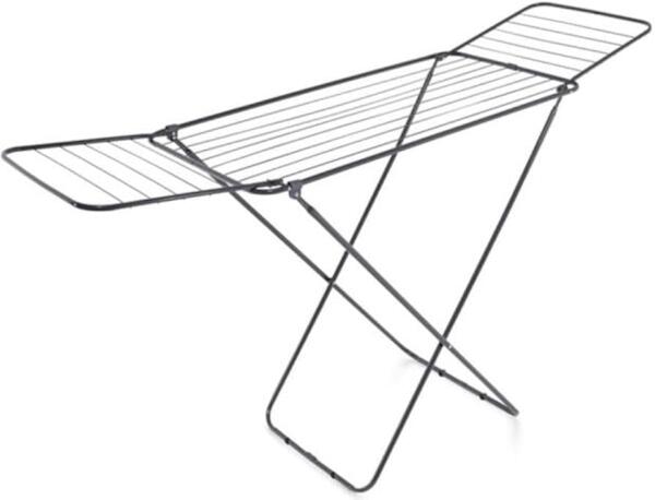 Stendino in metallo pieghevole, realizzato con struttura robusta e durevole, dotato di fili o barre per l’asciugatura ordinata e uniforme del bucato, adatto sia per ambienti interni che esterni.