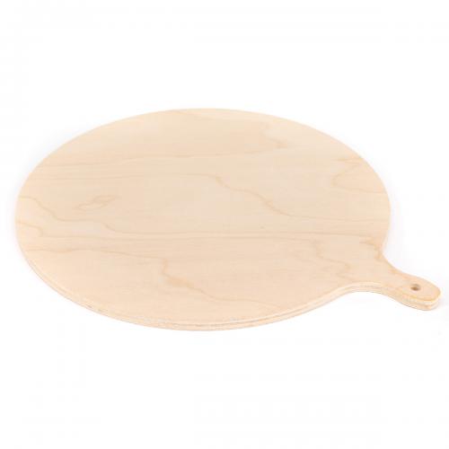 Tagliere tondo con manico in legno di betulla naturale, adatto per alimenti, non trattato
