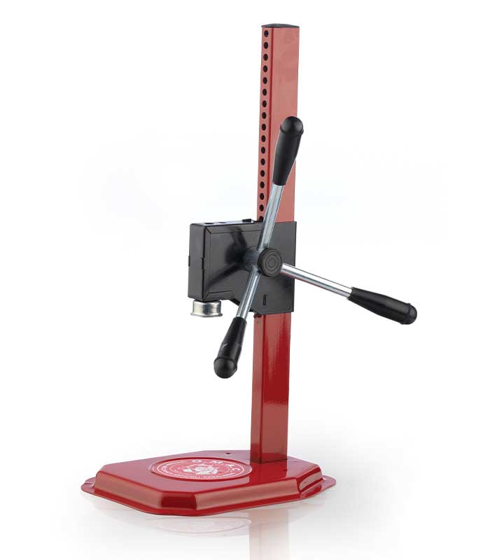 - Dopo aver posizionato la bottiglia sulla base, regolato lโaltezza della tappatrice e posizionato il tappo, รจ sufficiente una leggera pressione sulla leva per stringere il tappo a corona sullโimboccatura della bottiglia