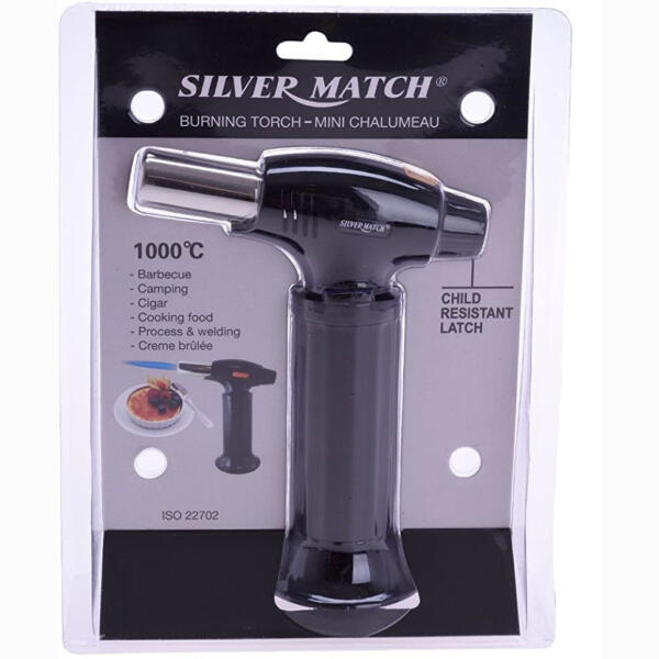 La torcia a gas Silver Match è un bruciatore di qualità professionale con fiamma regolabile che può produrre una combustione di 1000°C. Ricaricabile con gas butano standard per un uso illimitato e dal design elegante e innovativo per un’ergonomia e un utilizzo ottimale è perfettamente progettato per attività culinarie come glassa, grigliate, grigliate e crème brulée caramellizzante. Adatto anche per qualsiasi attività all’aperto come il campeggio e i barbecue, può essere usato per accendere sigari o per piccoli lavori di saldatura o bricolage.