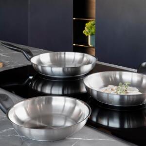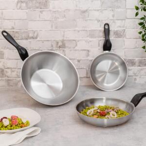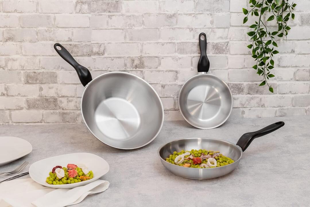 • Fondo triplen a 3 strati acciaio-alluminio-acciaio per un’ ottimale distribuzione del calore